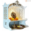 This elegant home temple combines traditional aesthetics with modern convenience, making it a perfect addition to any urban home or office. Crafted from high-quality white laminated engineered wood, its clean, minimalist finish allows the intricate cutout patterns and golden accents to stand out beautifully.