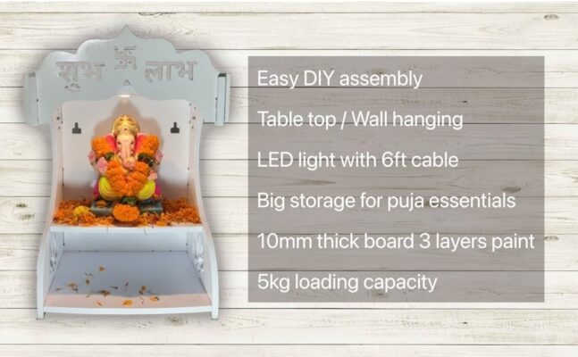 LED Illumination: Built-in LED spot light provides warm ambient lighting for pooja rituals and enhances the spiritual atmosphere