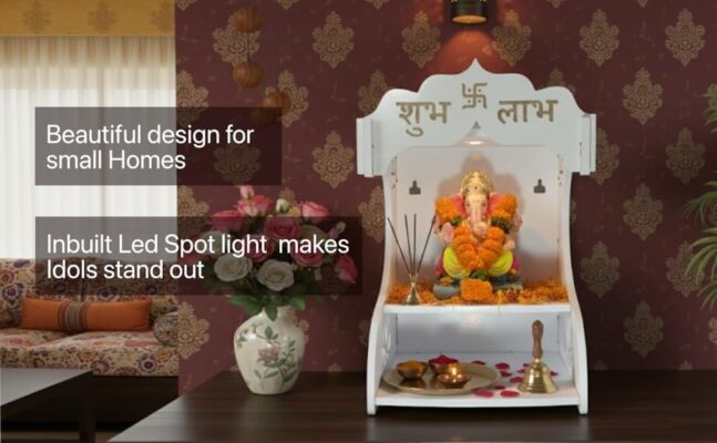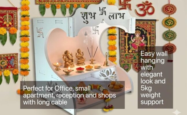 LED Illumination: Built-in LED spot light provides warm ambient lighting for pooja rituals and enhances the spiritual atmosphere