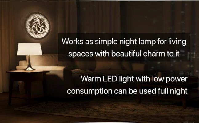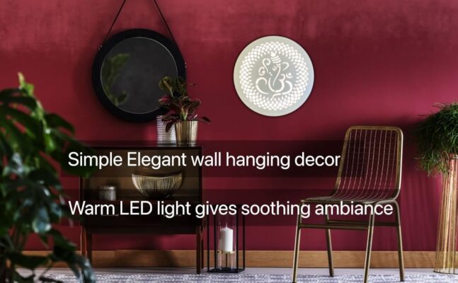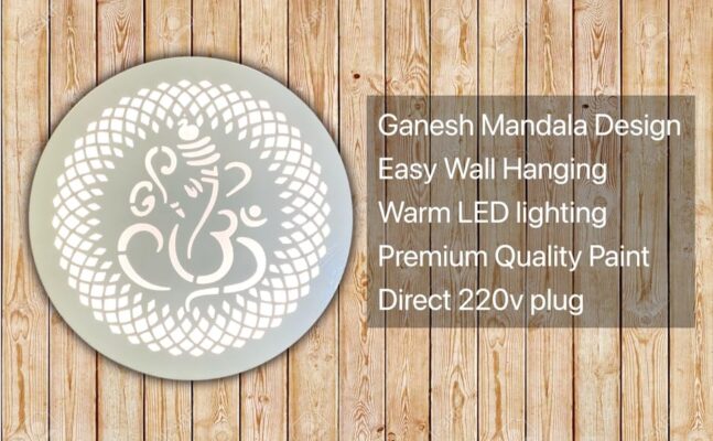 UPASKAR WOOD WORKS Wall decor LED Ganesha Decorative Mandala Design for homes,temples and halls | ready to use | white with warm LED backlight